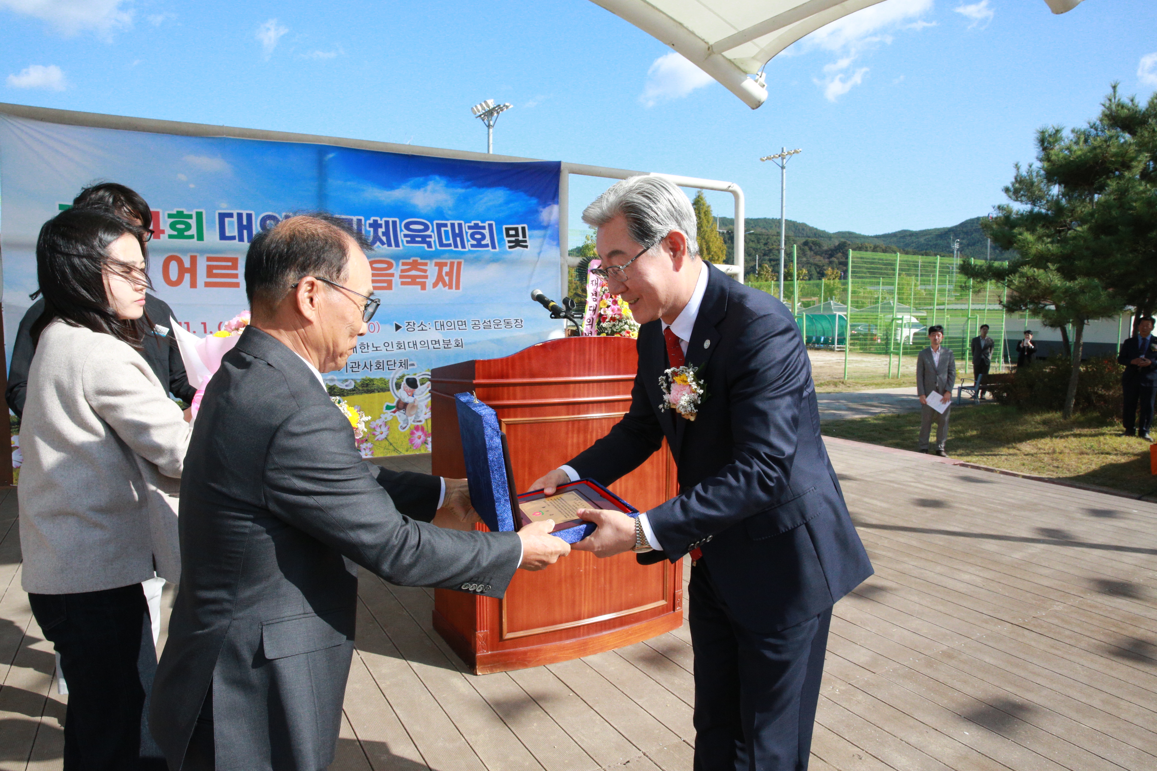 1일 열린 대의면민 체육대회 및 어르신 한마음축제에서는 수해 복구에 헌신한 공무원들을 대표해 오태완 군수가 주민들로부터 감사패를 전달받는 뜻깊은 시간도 마련됐다.